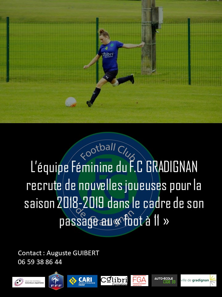 Le FC Gradignan recherche des joueuses, débutantes ou confirmées pour son passage en équipe à 11.