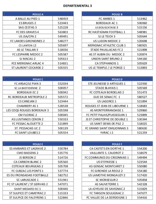 Départemental Les poules de Départemental 3 © Foot-Gironde.fr DépartementalSeniors Les poules de Départemental 3 3 août 2018 0 FacebookTwitterWhatsAppEmailImprimer ARTICLES CONNEXESPLUS DE L'AUTEUR Coupe de France Parempuyre FC veut poursuivre l’aventure ! Agenda 2e journée de D1 Intersport Féminine Départemental Foot Entreprise les résultats de la 1ère journée de D1