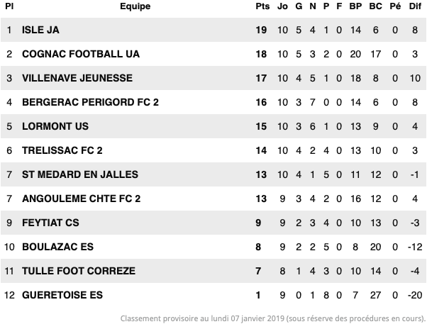 Une cinquième avec une seule défaite en dix matchs de championnat à quatre points de la première place. Et un très bon parcours en coupe de France, avec un sixième tour.