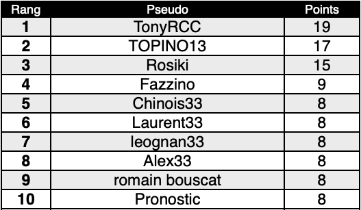 Ce concours de pronostics est basé sur les matchs des équipes de Gironde. Le parieur ayant le plus de points à la fin du championnat remporte l’épreuve.