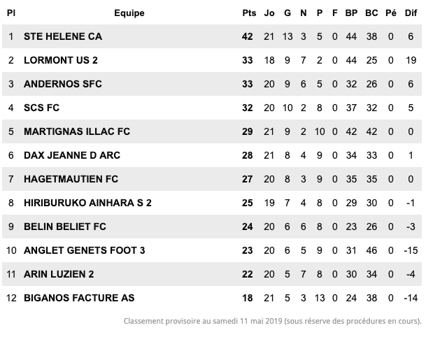 En l’emportant 3-1 contre Martignas Illac, Sainte Hélène a obtenu son billet pour jouer en régional 2 la saison prochaine. Les protégés de David Lassarte ont reçu grand nombre de félicitations dont Emmanuel Courtot, entraîneur de Martignas Illac, qui nous indique « Félicitations à eux » ou encore Znouba Abde, entraîneur de Lormont B qui a tenu à adresser toutes ses « félicitations à Sainte Hélène ». Andernos a aussi rendu hommage à son concurrent sur sa page Facebook.