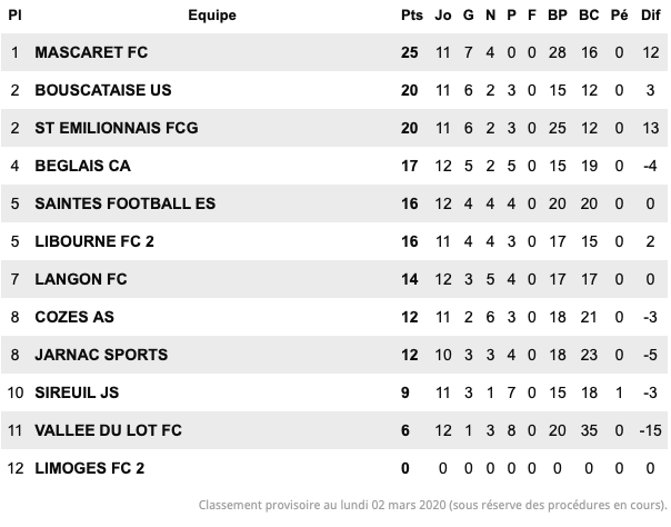 Par cette victoire à l’extérieur, Le Bouscat se replace à la seconde place du classement.