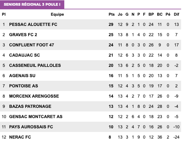 Ce dimanche, Pays Aurossais recevait Nérac. Les deux équipes sont classées en bas de classement et cette rencontre était donc importante pour chaque partie. Les Girondins l’ont emporté sur le score de 5-0 leur permettant de sortir de la dernière place du classement. Une belle performance qui leur permet de revenir à deux points du premier non relégable.