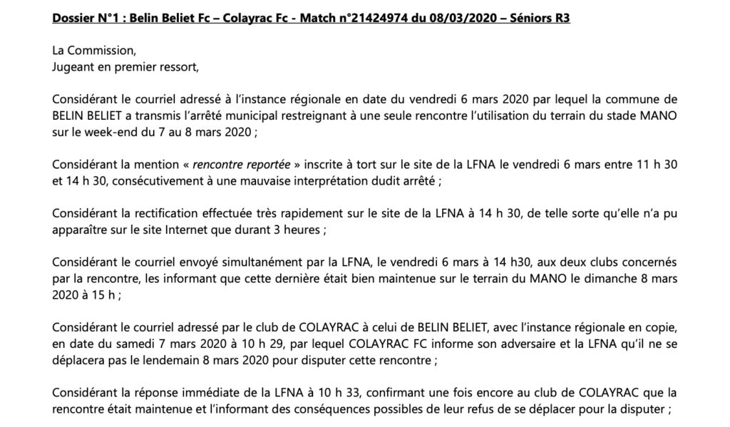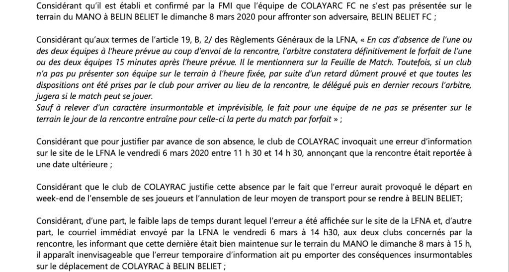 Le 8 mars dernier, Colayrac ne s’était pas déplacé à Belin Beliet pour le compte de la 14ème journée de régional 3.