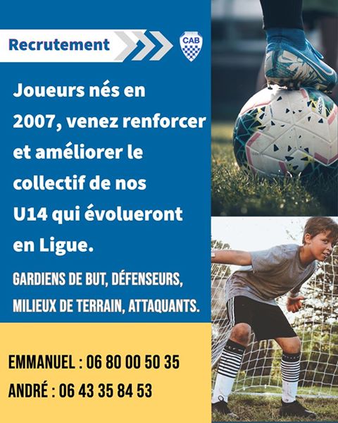 Annonces Bègles recrute des joueurs U14 ligue © Foot-Gironde AnnoncesJoueurs Bègles recrute des joueurs U14 ligue 4 juin 2020 0 FacebookTwitterWhatsAppEmailImprimer ARTICLES CONNEXESPLUS DE L'AUTEUR Annonces Club cherche coach gardiens Annonces Recherche poste secrétaire et ou administratif Annonces Recrutement joueurs