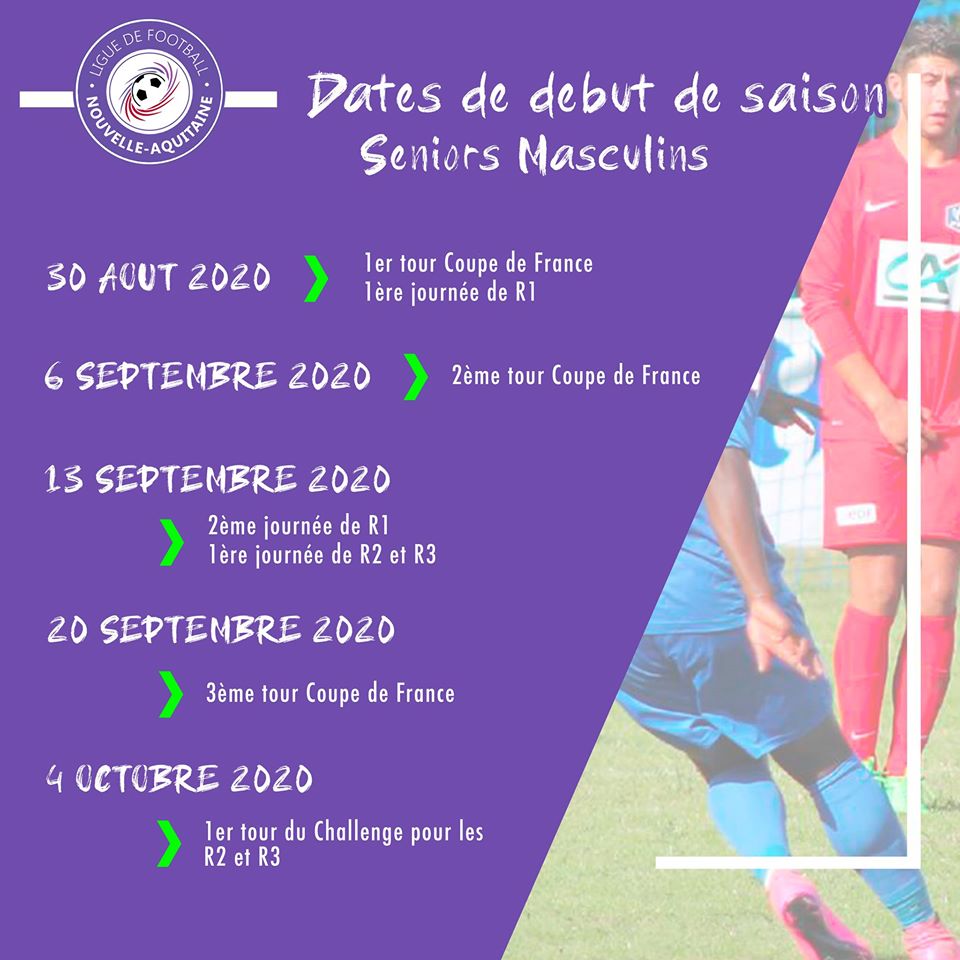 A la suite du comité de direction du mercredi 17 juin, la Ligue de Football Nouvelle-Aquitaine a communiqué sur les dates importantes du début de saison pour les différentes compétitions ! A noter l'existence d'un challenge pour les clubs de R2 et R3, qui remplace la coupe Nouvelle Aquitaine pour ces clubs qui seront en poule de 12.