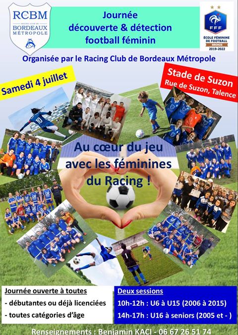 Contact : Benjamin KACI (Responsable Technique des Féminines du Racing) – 06 67 26 51 74
