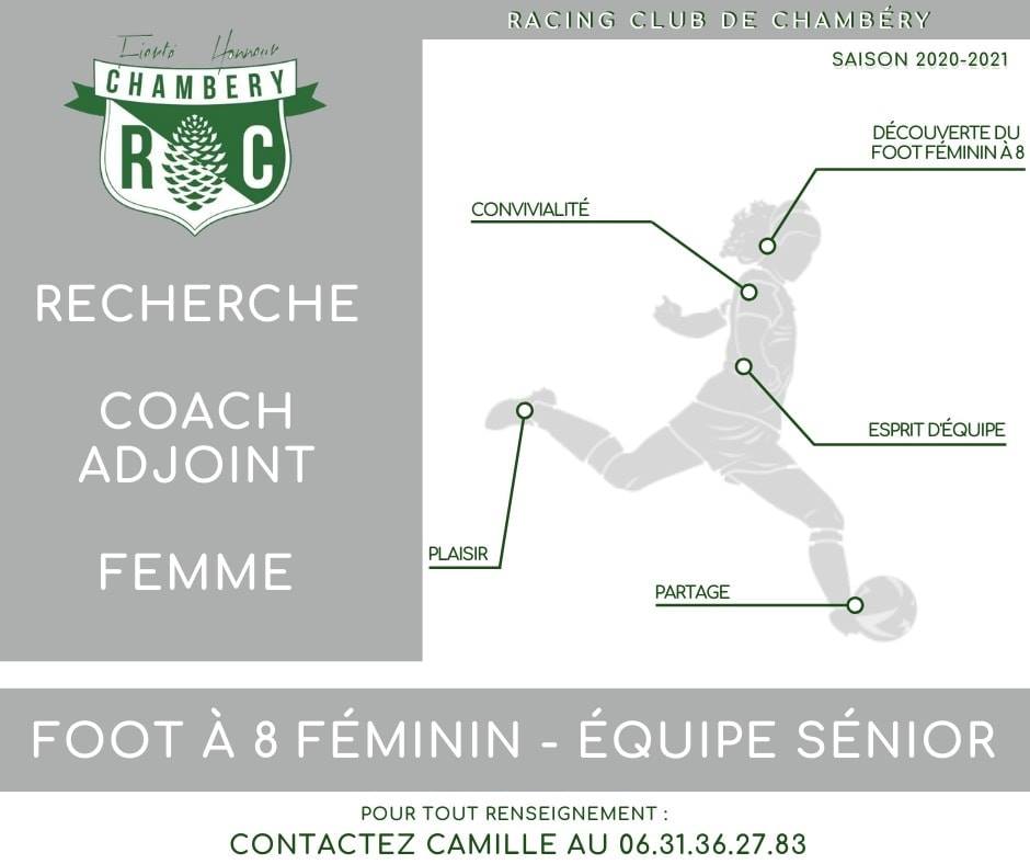 Dans la continuité du développement du projet de foot féminin, le RC Chambéry recherche activement une encadrante pour diriger l’équipe avec le coach déjà en place.