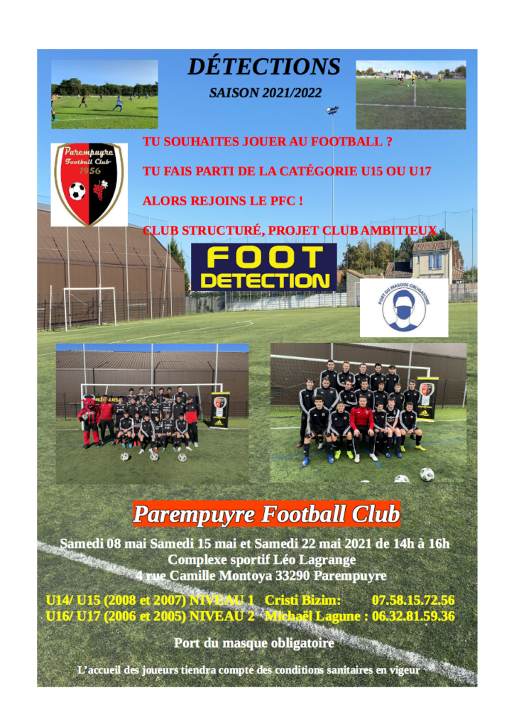 Des après-midis de détections seront organisés sur 3 samedis (8,15 et 22 mai 2021), pour les catégories U15 et U17 afin de préparer la prochaine saison 2021/ 2022.