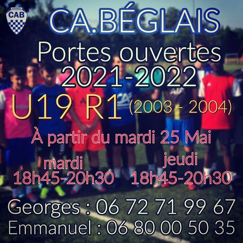 Annonces Le CA Bèglais organise des journées portes ouvertes U19 © Foot-Gironde AnnoncesJoueurs Le CA Bèglais organise des journées portes ouvertes U19 19 mai 2021 0 FacebookTwitterWhatsAppEmailImprimer ARTICLES CONNEXESPLUS DE L'AUTEUR Annonces Recrute gardienne U 15 Annonces Club cherche coach gardiens Annonces Recherche poste secrétaire et ou administratif