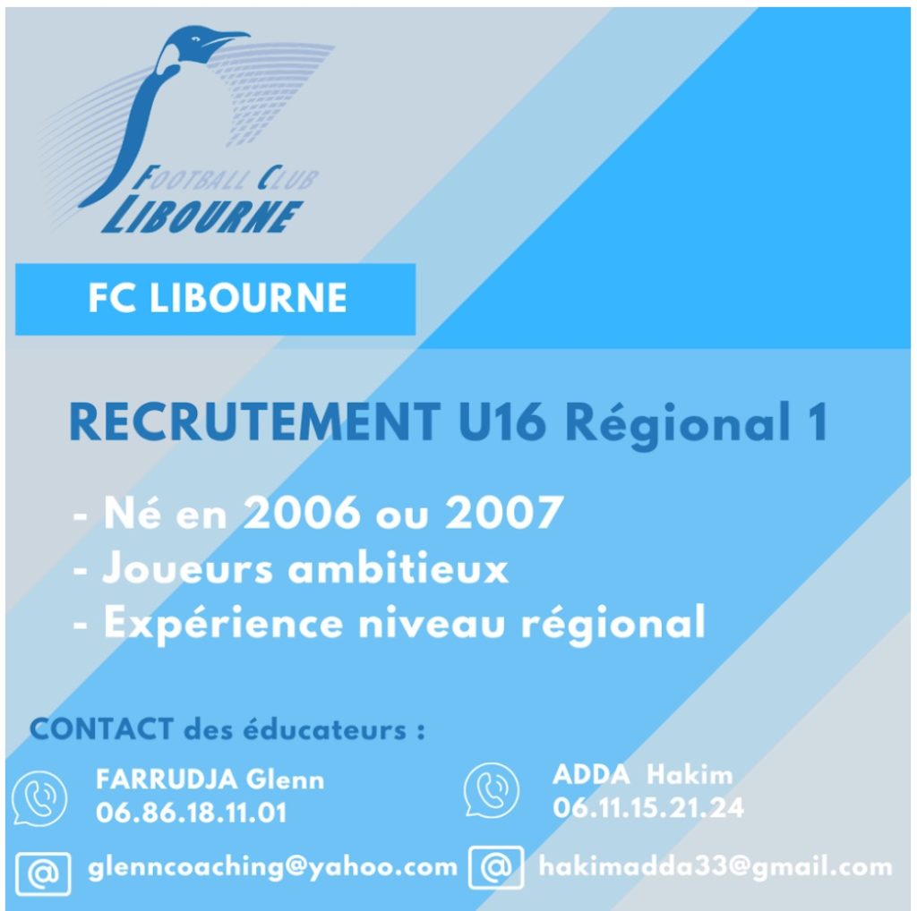 Annonces Le FC Libourne recrute des U16 régionaux © Foot-Gironde AnnoncesJoueurs Le FC Libourne recrute des U16 régionaux 23 juin 2021 0 FacebookTwitterWhatsAppEmailImprimer ARTICLES CONNEXESPLUS DE L'AUTEUR Annonces Recrute gardienne U 15 Annonces Club cherche coach gardiens Annonces Recherche poste secrétaire et ou administratif