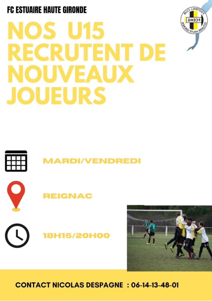 Annonces Estuaire Haute Gironde recrute des U15 © Foot-Gironde AnnoncesJoueurs Estuaire Haute Gironde recrute des U15 24 août 2021 0 FacebookTwitterWhatsAppEmailImprimer ARTICLES CONNEXESPLUS DE L'AUTEUR Annonces Recrute gardienne U 15 Annonces Club cherche coach gardiens Annonces Recherche poste secrétaire et ou administratif