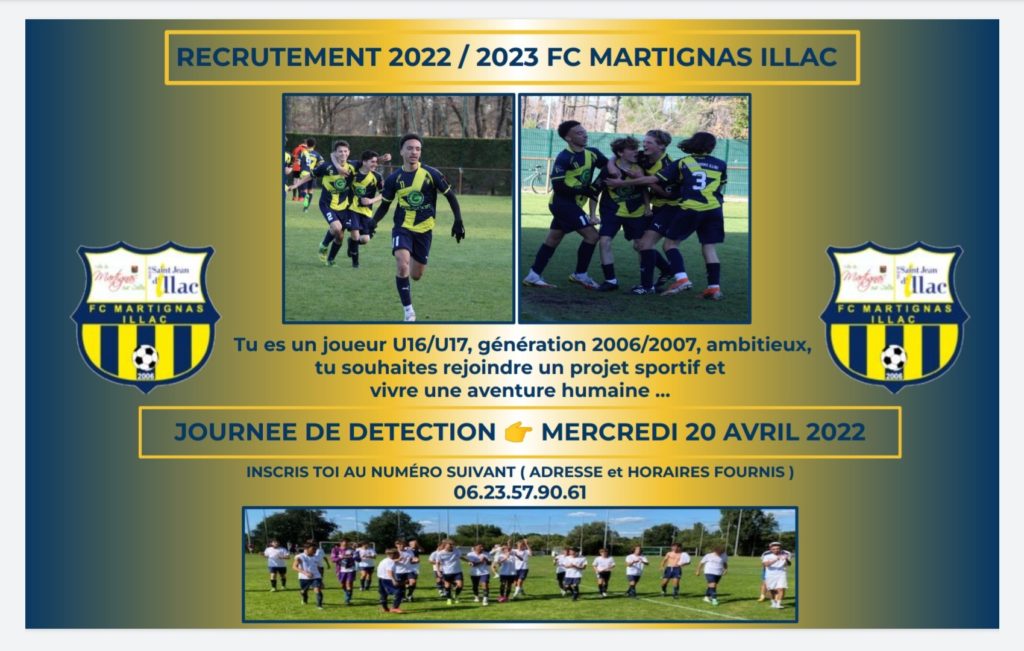 Annonces Recrutement U16/U17 au FC Martignas Illac saison 2022-2023 © Foot-Gironde AnnoncesJoueurs Recrutement U16/U17 au FC Martignas Illac saison 2022-2023 8 avril 2022 0 FacebookTwitterWhatsAppEmailImprimer ARTICLES CONNEXESPLUS DE L'AUTEUR Annonces Club cherche coach gardiens Annonces Recherche poste secrétaire et ou administratif Annonces Recrutement joueurs